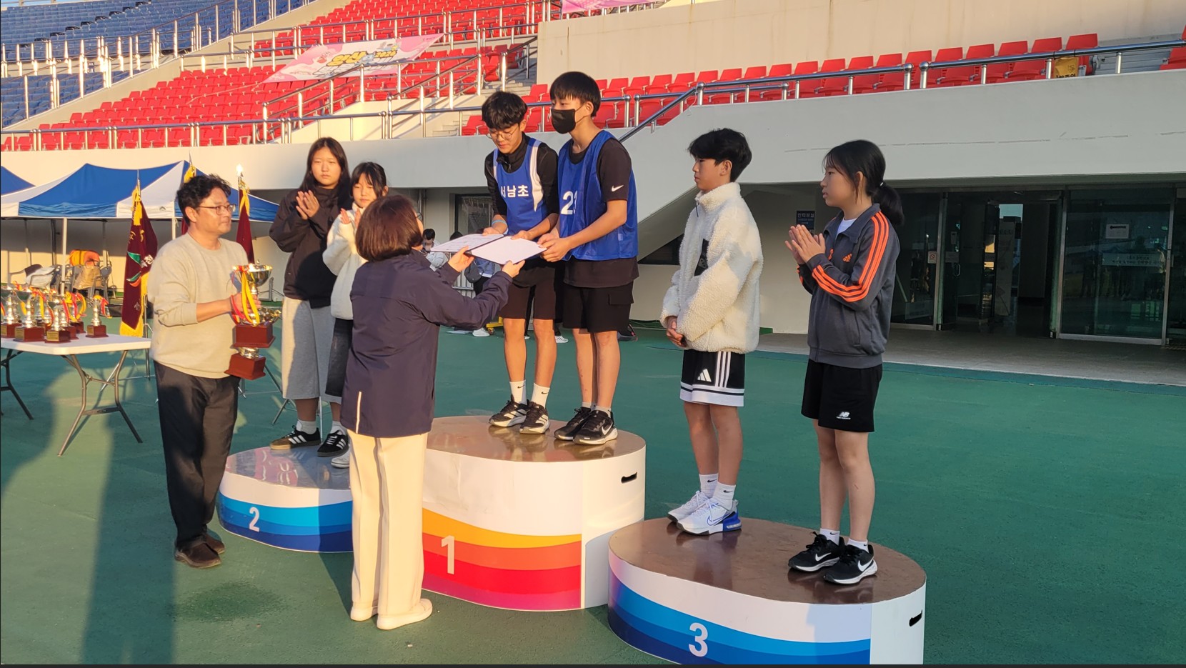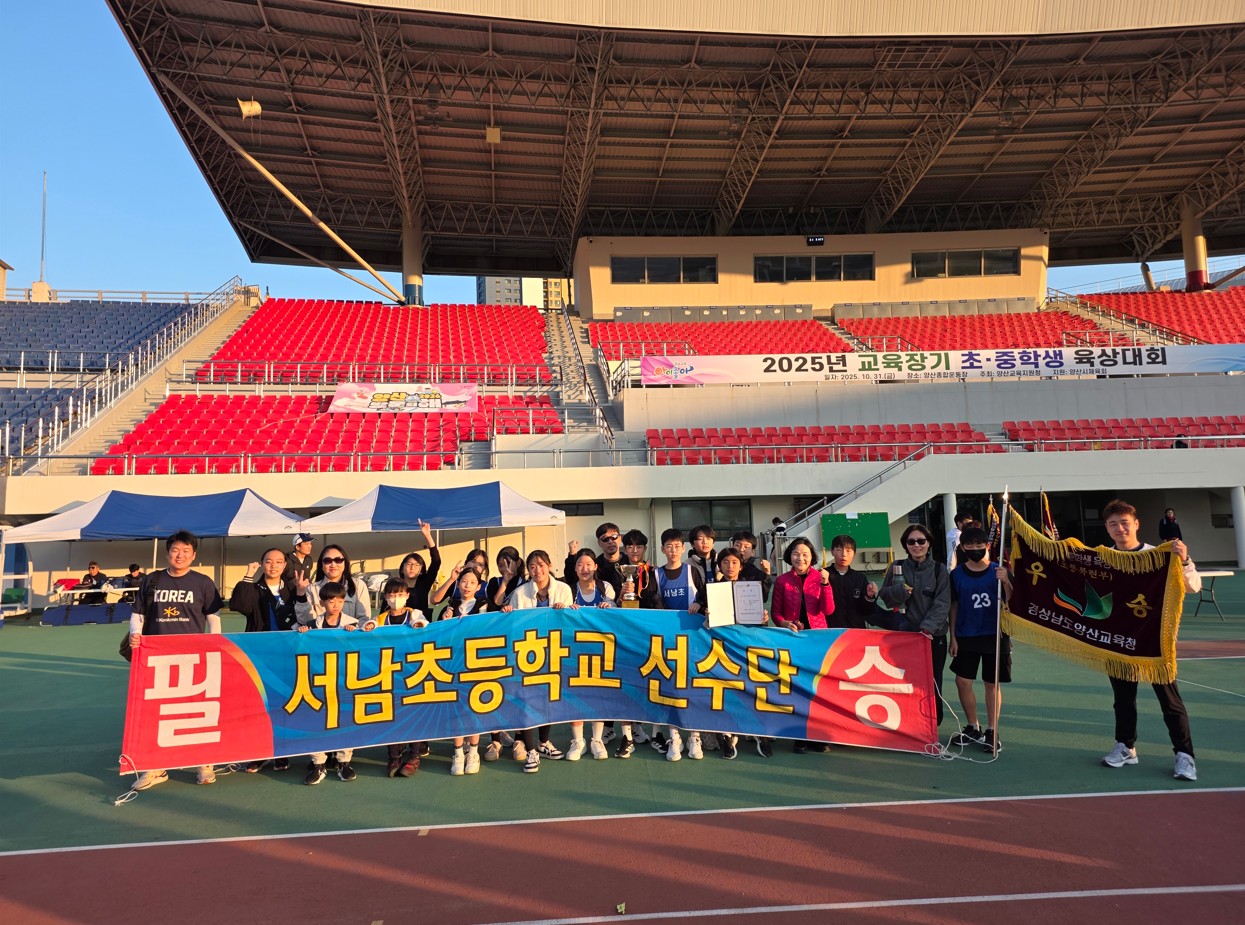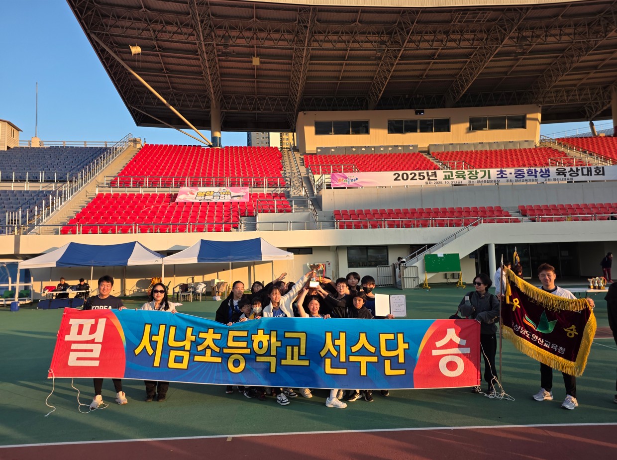 1. 일시: 2025. 10. 31.(금) 2. 장소: 양산종합운동장 3. 지난 양산교육지원청 교육장배 초·중학생 육상경기대회에 본교 대표선수 20명이 출전하였습니다. 선수들은 그동안의 꾸준한 연습과 땀의 결실을 마음껏 발휘하며 전 종목에 걸쳐 열정적으로 경기에 임했습니다. 모든 학생이 서로를 응원하고 끝까지 최선을 다한 결과, 목련부 종합우승이라는 값진 성과를 이루었습니다. 출전한 모든 선수들의 노력과 열정에 아낌없는 박수를 보내며, 함께 응원해 준 친구들과 지도해 주신 선생님들께도 감사의 마음을 전합니다. .